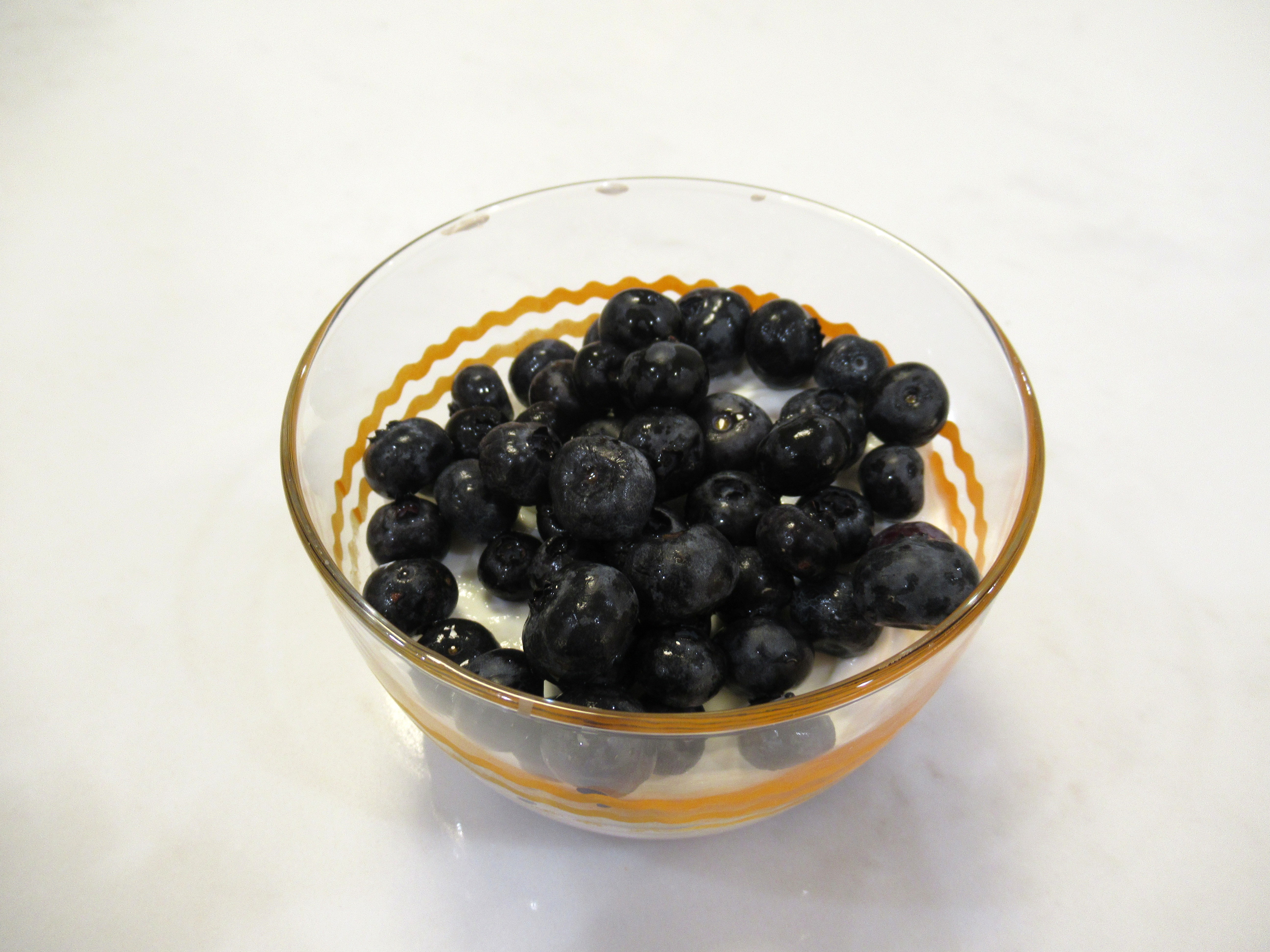 A good skyr bowl with Crofter’s blueberry jam, Olyra blueberry bites, and fresh blueberries.