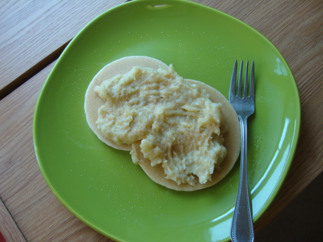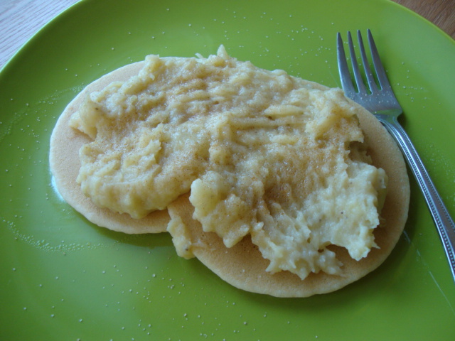 (1) Breakfast = Van’s Homestyle Pancakes with homemade Banana Roux and a sprinkle of cinnamon-sugar.