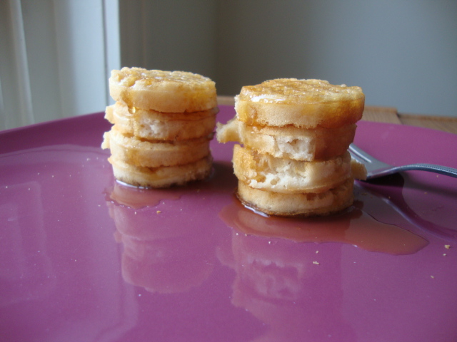 Breakfast this morning was in the form of Van’s Minis Waffles with maple syrup.