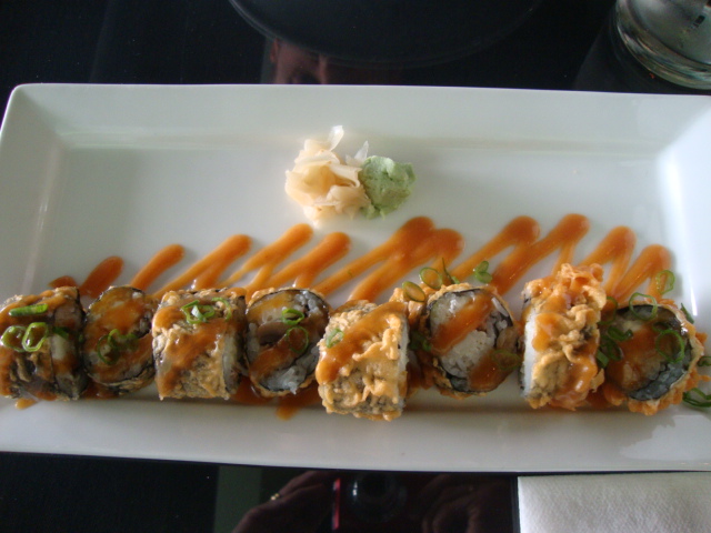 So tasty!  The roll was tempura’d with cream cheese, green onions, and crab, then topped with miso spiked caramel.