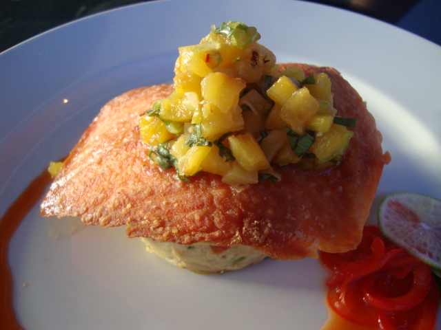 It came well done with roasted pineapple salsa and egg fu young.  I passed the eggs to Adam but devoured my fish.