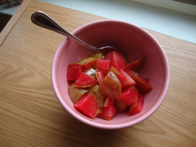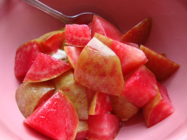 I’ve never had a plucot! I’ve actually never seen them – I need to keep my eyes open. I like my plumbs TART and a little firm. Yum. 🙂