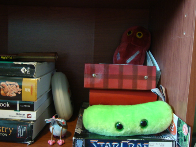 …i spy giant microbes on your shelf! aaahh is that the flesh eating one? i have the egg cell lol i love it- i’m such a nerd haha