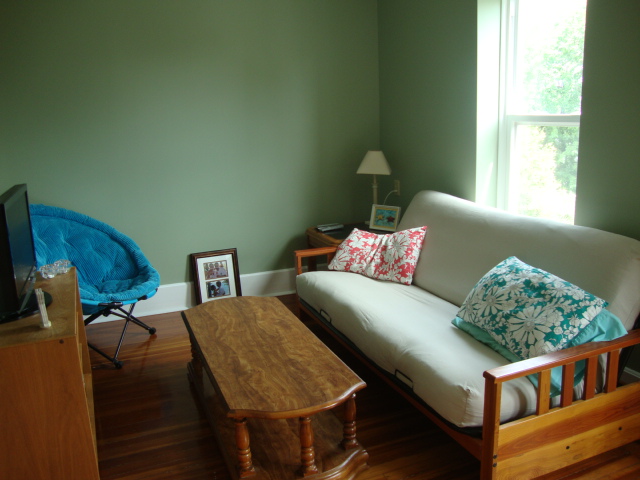 I’m not sure if the pictures really show it, but the walls are a fabulous blue-green-gray color that makes me happy 🙂