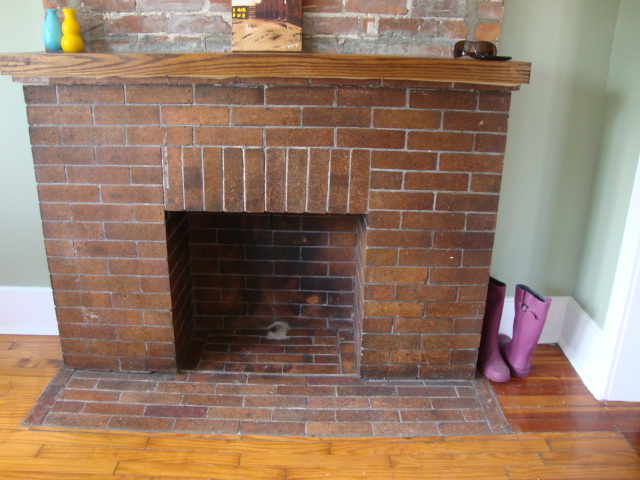 Looooove the fireplace (non-working) and exposed brick!