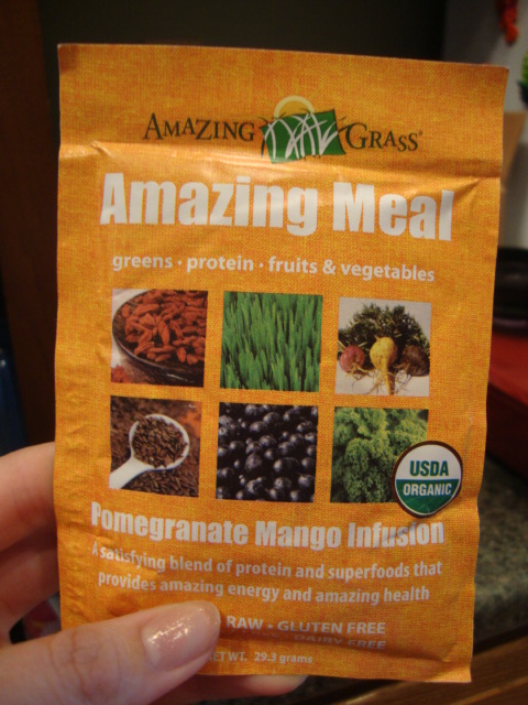 Pomegranate Mango Infusion Amazing Meal.  I smoothied it up with 1/2cup frozen strawberries, 1cup Silk Almond Milk, and 1/2cup water.