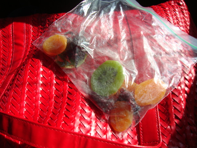 We spent a looooong time at a nearby outlet mall, which was tiring but amazing.  At some point I ate this baggie of dried fruit (kiwi, apricot, hibiscus).