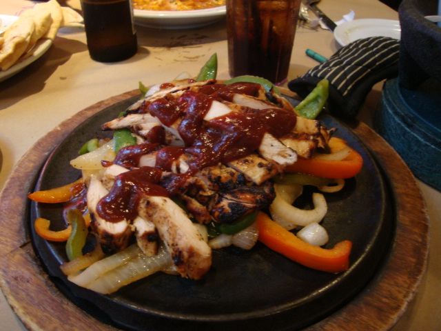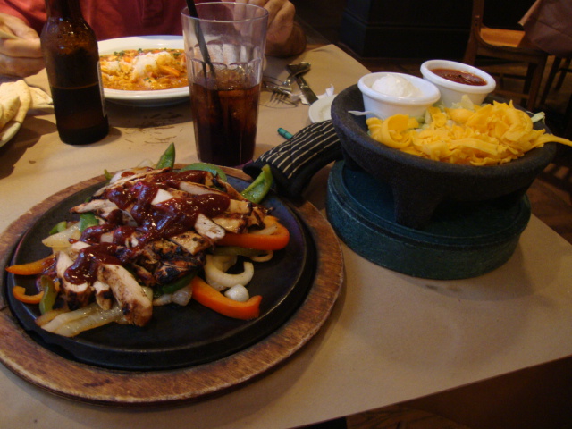 For my meal I ordered the chicken fajitas, which came with cheese, sour cream, onions and peppers, lettuce, salsa, and smokey bbq sauce.