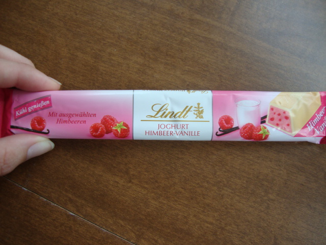 Mid sneezes and tissues I did find time to eat a bunch of crap.  Strawberry yogurt bar from Lindt.