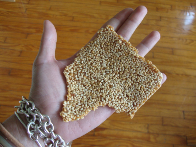my parents brought it; sort of tastes like a dried crepe with sesame seeds?