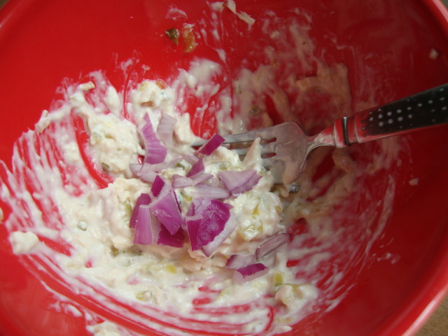 I had a bit of tuna salad that I ate straight from the bowl and it also got a big dose of red onion.