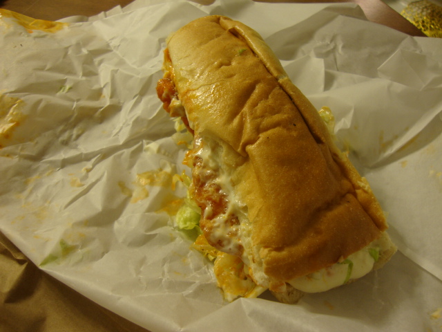 I misread my crockpot dinner directions and ended up with a major time fail. Dinner came from a local spot down the street. A buffalo chicken sandwich,