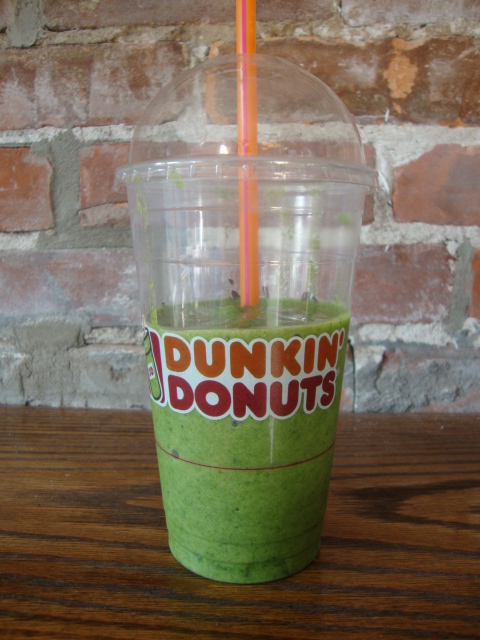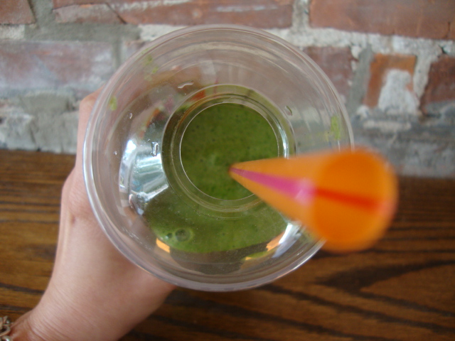 1cup frozen spinach + 1frozen banana + 1cup oj = a new convert; she thought it tasted great!  Here’s what our mouths saw –