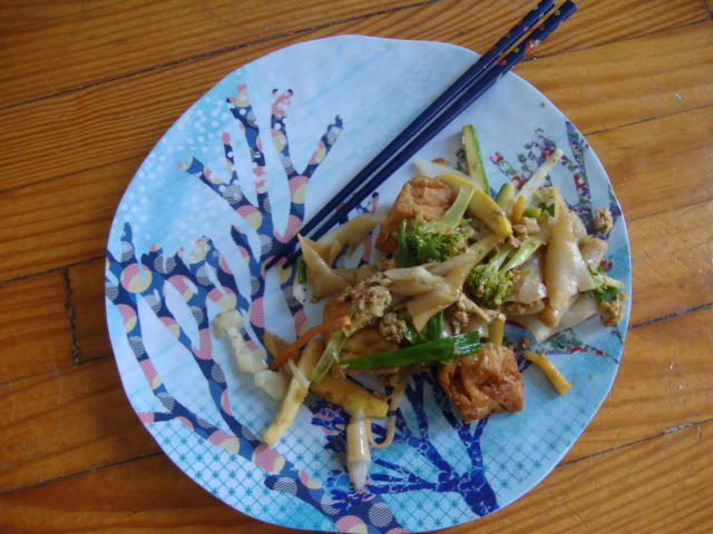 I have zero control around broad rice noodles so I plated half of the serving and put the rest away before I even took a taste.