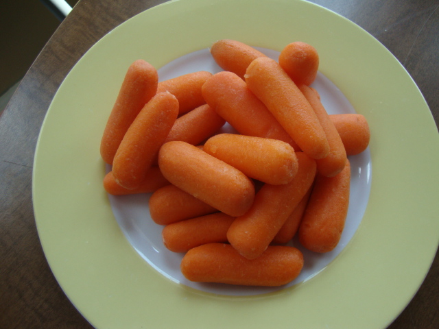1. I’ve tried one of Healthy Choice’s frozen meals and they definitely don’t hold me down for several hours. I actually prefer the big carrots. I’ve tried baby carrots numerous times and although I liked them at first, there were several bad ones in a bag. I never had a problem with the big ones (okay, but just the amount of time it takes to peel and cut them…I’m a slow cutter), so I just never bother with the baby ones nowadays.