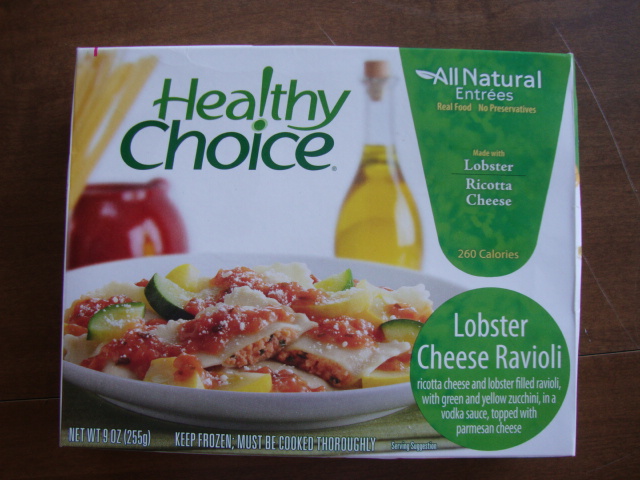 At lunchtime I turned to the freezer.  We have a pretty tight food budget this year and I try to snatch up frozen meals on sale so I tend to have a random assortment.  Today I grabbed a Lobster Cheese Ravioli from Healthy Choice.