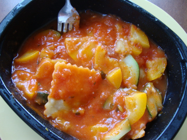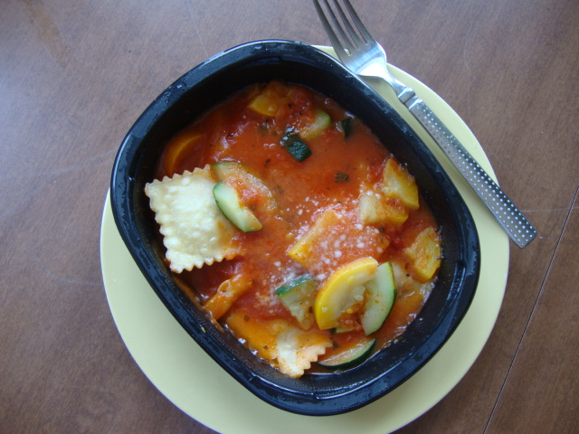 The ravioli were delicious, even a little better than the Buitoni variety we tried the other day.  I liked the generous portion of squash as well, my only complaint is that the marinara sauce was too watery.