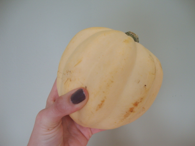 My lunch today revolved around a local white acorn squash I picked up at the Co-op this weekend.