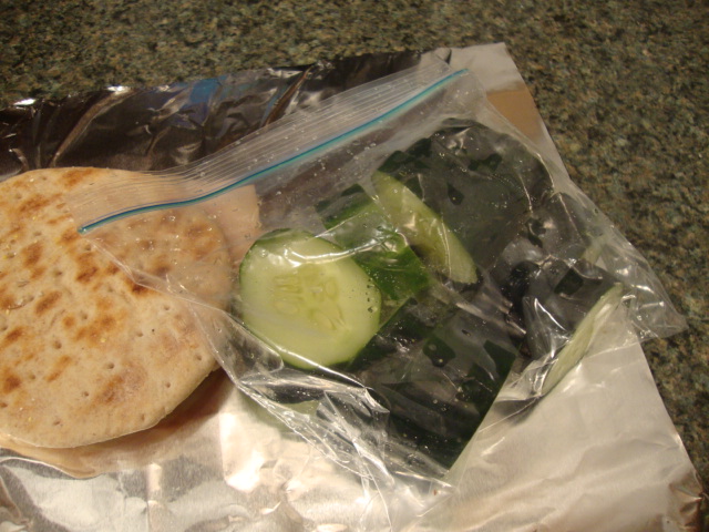 Turkey, Laughing Cow, Sandwich Thin. Yes, that is an entire cucumber in the bag, and I am happy to see you 😉