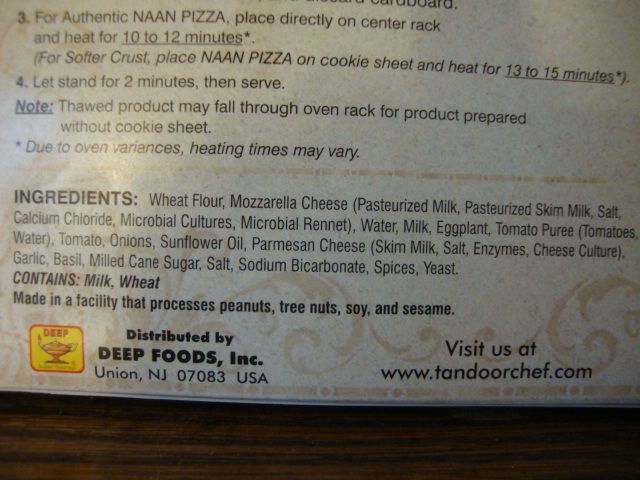 Dinner was the last of my Naan Pizza samples from Tandoor Chef.  Roasted Eggplant.