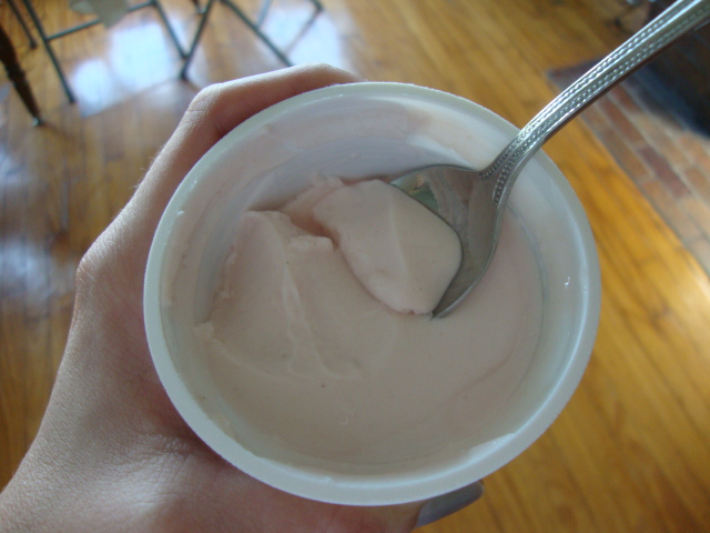I just got home a few minutes ago and I’ve already housed this Yoplait Greek Strawberry Yogurt.