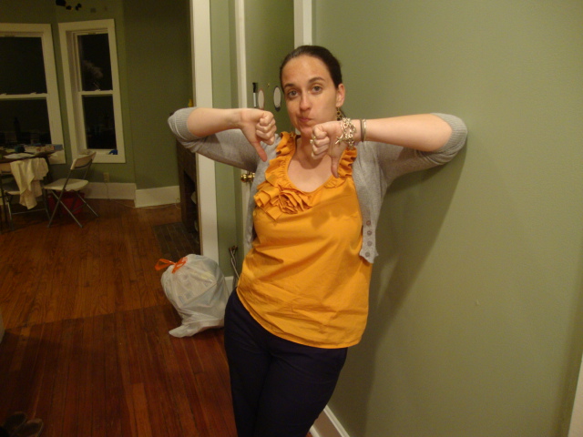 woooooohooooo we have the same j crew shirt! i think you mentioned it on my blog before too. i dont’ force myself to eat when i’m not hungry. i listen to my body instead! 🙂