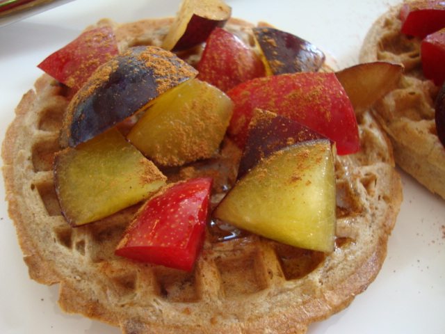 Breakfast was supposed to be a serving of Van’s waffles with 1T maple syrup, cinnamon, and sliced plum.