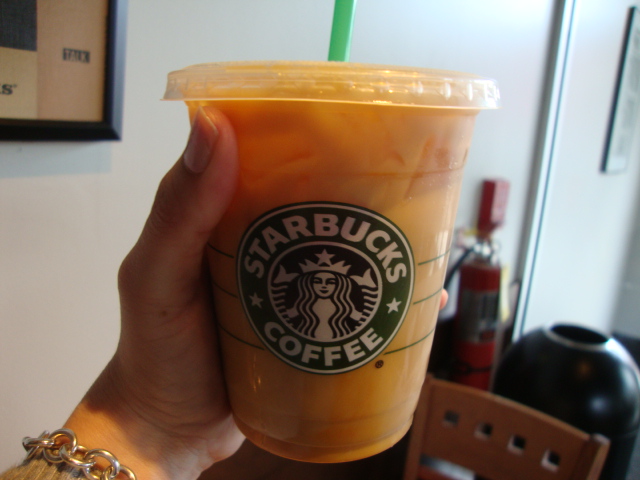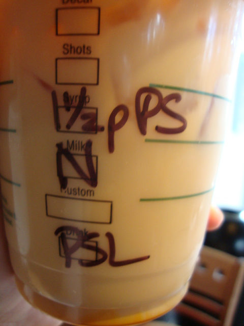 Tall, nonfat, iced, half syrup Starbucks pumpkin spice latte!