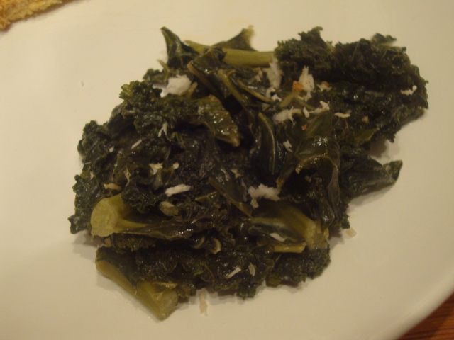 We used the remaining coconut marinade to cook down a big batch of kale.