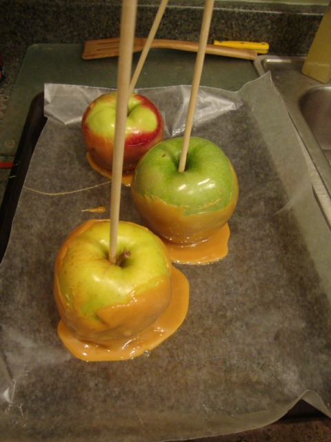 I worked up an appetite for dessert stirring, stirring, stirring in the kitchen. 40minutes later I was rewarded with caramel apples!