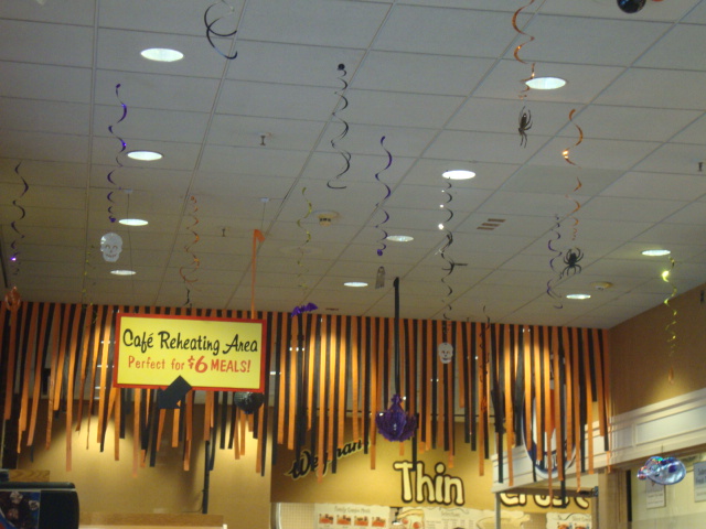 Around 11 we packed up our stuff and headed to Wegmans cafe for a study session. Between our hot bar obsession and the fact the booths are perfect study session size, Wegmans is the perfect spot. And we were jazzed to see that they had Halloween decorations up and employees dressed in costume!