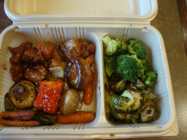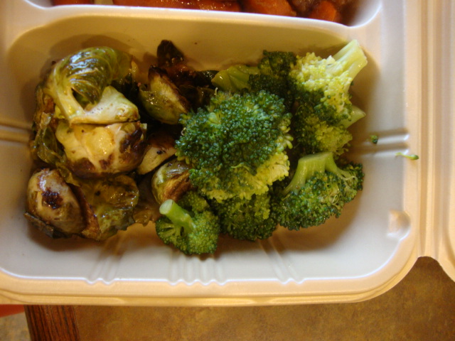 I got a random mish-mash of little bites. Steamed broccoli and brussels sprouts,