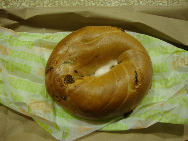 This was my first time with this flavor and I thought it was pretty great.  The flavor was marshmellow-y without being too sweet.  Not very filling though, which leads to (2) – a cinnamon raisin bagel with strawberry cream cheese.