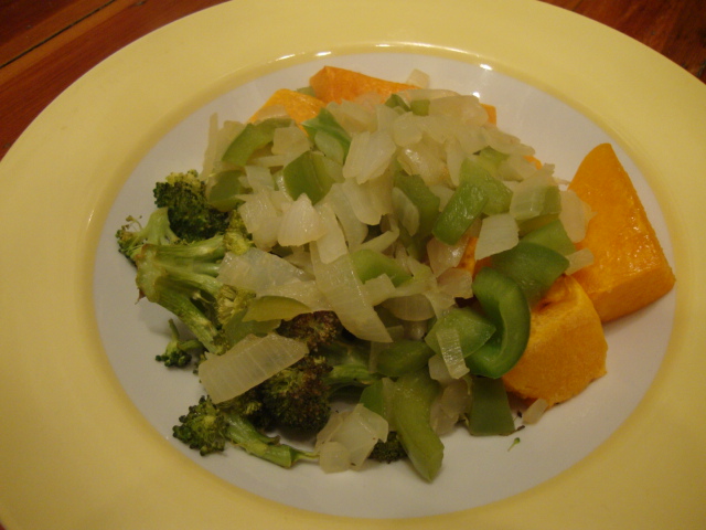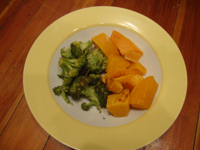 Oven roasted butternut squash and broccoli,