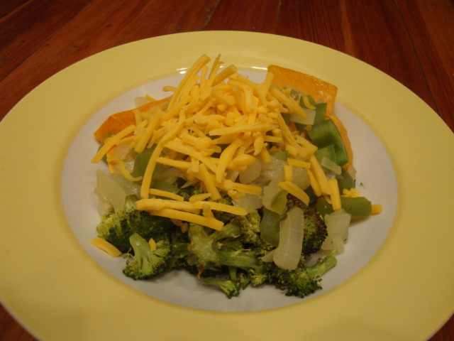 I stopped at a ‘fresh fast food’ Mexican place that we don’t usually frequent on the way home and I figured I should try an old favorite.  I was pretty impressed – these were cheesey without being too cheesey (ahem, the jalapeno nachos from my year on the couch!), and packed with beans.  I felt healthy(ish!) rather than sick after eating them.