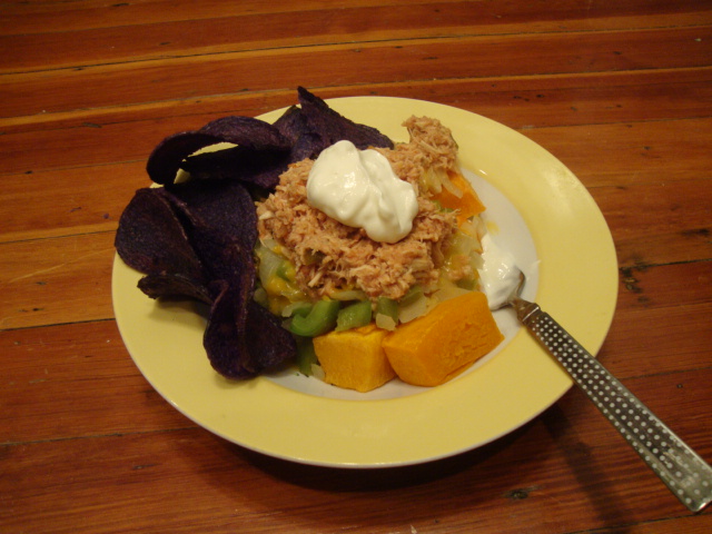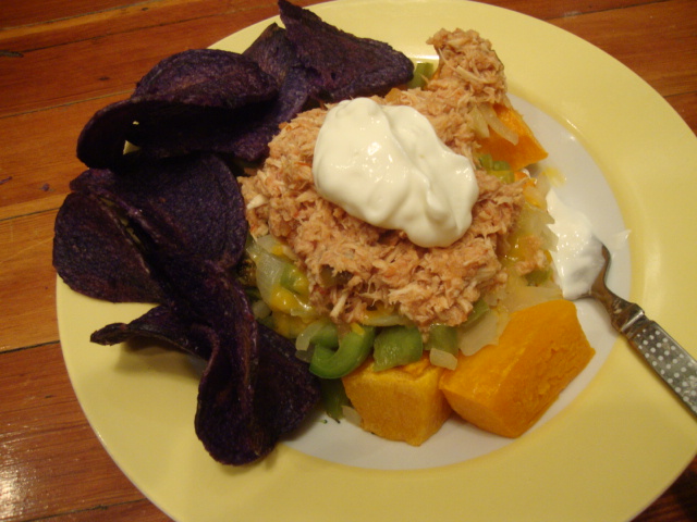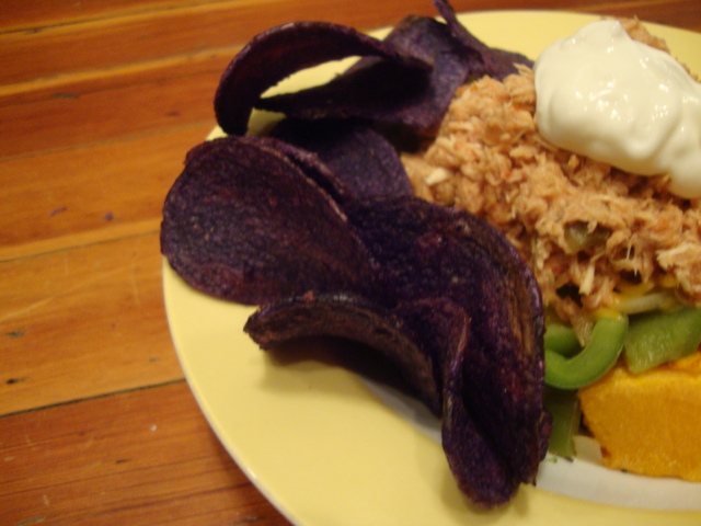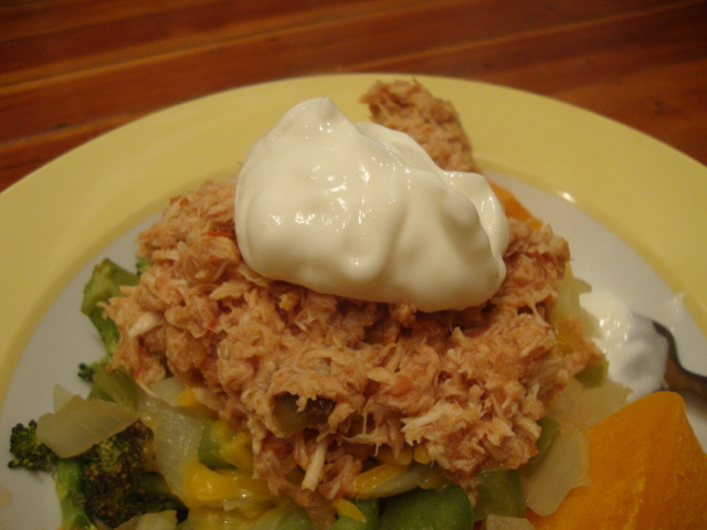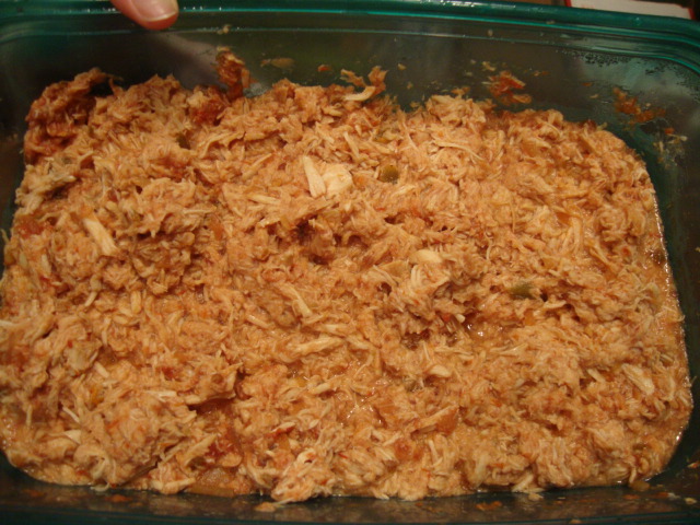 We’ve been loving stewed chicken in the crock pot lately, so why not salsa stewed chicken?!  Soooo simple – 1lb of chicken in the crock pot, a jar of salsa dumped on top, 8hours on low, shred with 2 forks.  Note – the spice level (for a medium) in this sauce is perfect, and I like the level of chunkiness.  Two thumbs up.