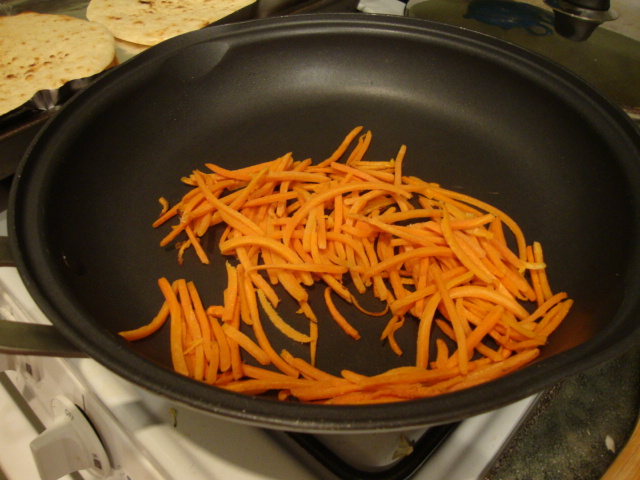 Soften some shredded carrots by sauteing over low heat in a bit of butter.
