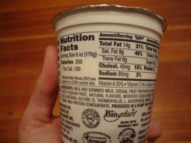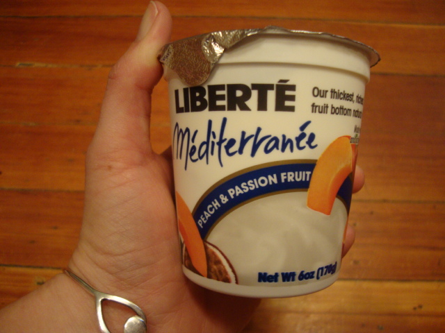 I wasn’t hungry for breakfast before lab, but I ate brunch when we got out at 10:30. This Liberte Peach and Passionfruit yogurt was on sale at Wegmans so I thought I’d give it a try.