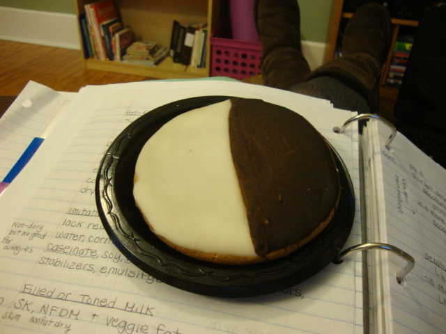 Before we could go to the show I had an afternoon of classes and studying. By the end of tonight I will have at least 100 notecards for tomorrow’s test! While I worked, Adam brought me home a cookie.