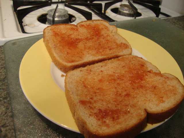 Most of my morning was spent study-study-studying. I have a HUGE test tomorrow! I did take time to make an exciting breakfast/lunch though. I was inspired by the Nature’s Pride bread sample I received through the Foodbuzz Tastemaker’s Program.