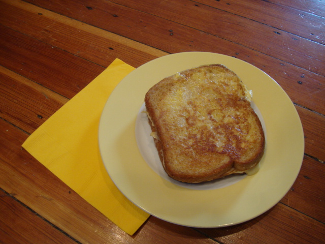 This sandwich (if you use the low-fat varieties I used) has ~500calories, perfect for 2-meals-in-1 brunch. And if I made any changes it would honestly be to healthy this up – there was almost a little too much cheesiness and fried goldenness going on.
