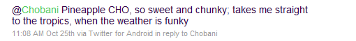 Did you know I won a case of Chobani?  If not you should probably start following me on Twitter.  We had to write an ode to our favorite flavor and I cinched the win with this bit of prose –