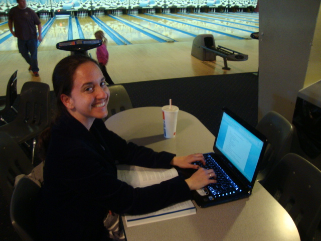 Don’t judge the girl on her laptop in the bowling alley, I completed an important assignment!