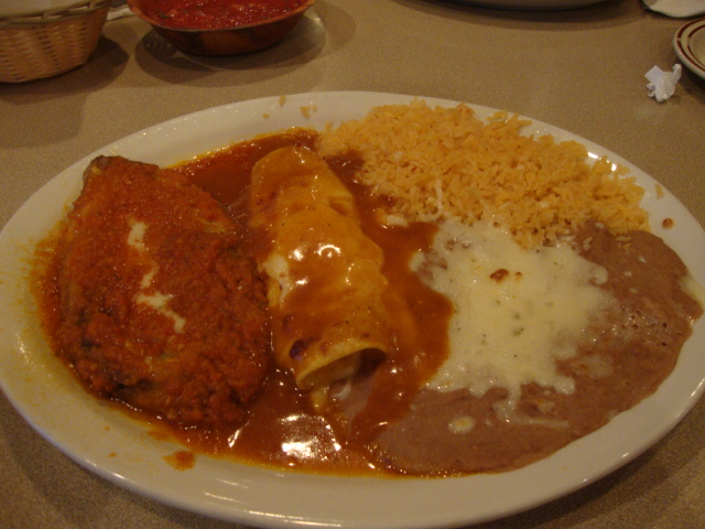 And for my meal my vegetarian plate came with 1 chile relano, 1 cheese enchilada, and rice and beans.