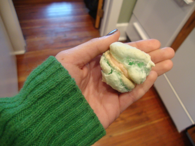 A coconut mini macaroon with cinnamon cream cheese filling made its way into my mouth the minute I got in the apartment.