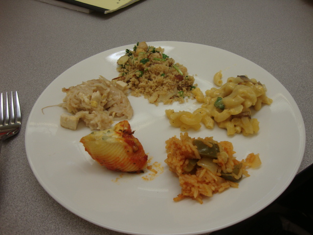 Food lab today was about grains and starches; my group made saffron rice pilaf, bulgur salad, and creamed toast with asparagus and eggs.  And you’ll notice none of those dishes made it onto my plate….