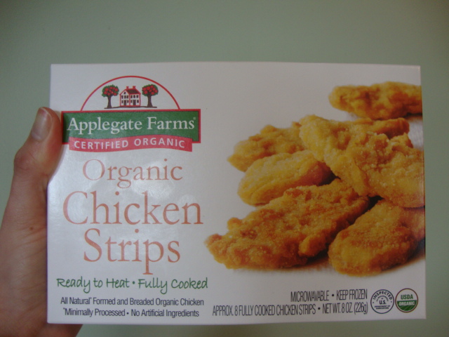 The chicken strips were a free sample from Applegate Farms.  They heard me raving about their turkey bacon (so good that I don’t have to miss a thing about not eating mammals and the only kind of “fake” bacon that Adam will eat) and offered me a chance to try another product.