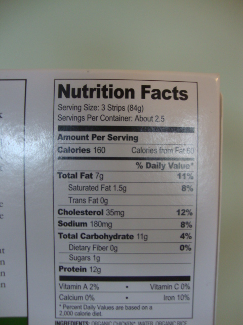 The strips were delicious.  They cook nice and crispy (I oven-baked) and had a nice buttery aftertaste to them.  Plus I approve of the ingredient list and nutritional stats.