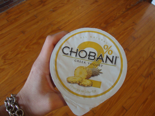 I didn’t get to pick up Adam until 1pm and by the time we got back to our apartment is was after 2:00 and I was starving.  I calmed my growling stomach with a 2% Pineapple Chobani while I put lunch in the oven.