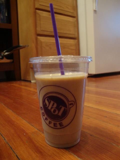 Kath‘s oat smoothies are genius! And my holiday twist was pretty darn smart too 😉 This was a leftover serving of oatmeal, 1 frozen banana, and 2/3cup Silk Soy Nog, with a healthy shake of nutmeg.
